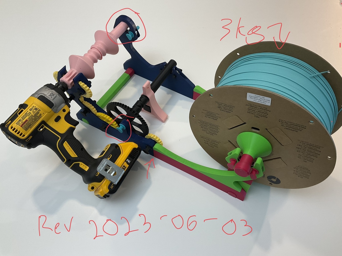 Мотаем по разным причинам: чтобы перемотать 3кг бобину на 1 кг, с картонных бобин на нормальные пластиковые под AMS, убедиться что нет перехлёстов, исправить намотку, избавиться от возможной пыли на филаменте и т.д. Данный перемотчик под дрель, но ребята там и ручку приделывали и моторчик, улучшали компоненты и всячески старались что бы оно работало долго и пушисто.