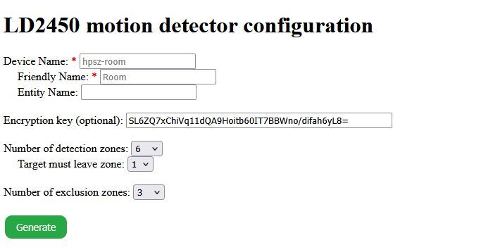 1) Заполняем два обязательных поля со звёздочкой. Выбираем нужное кол-во зон с детекцией. И генерируем.