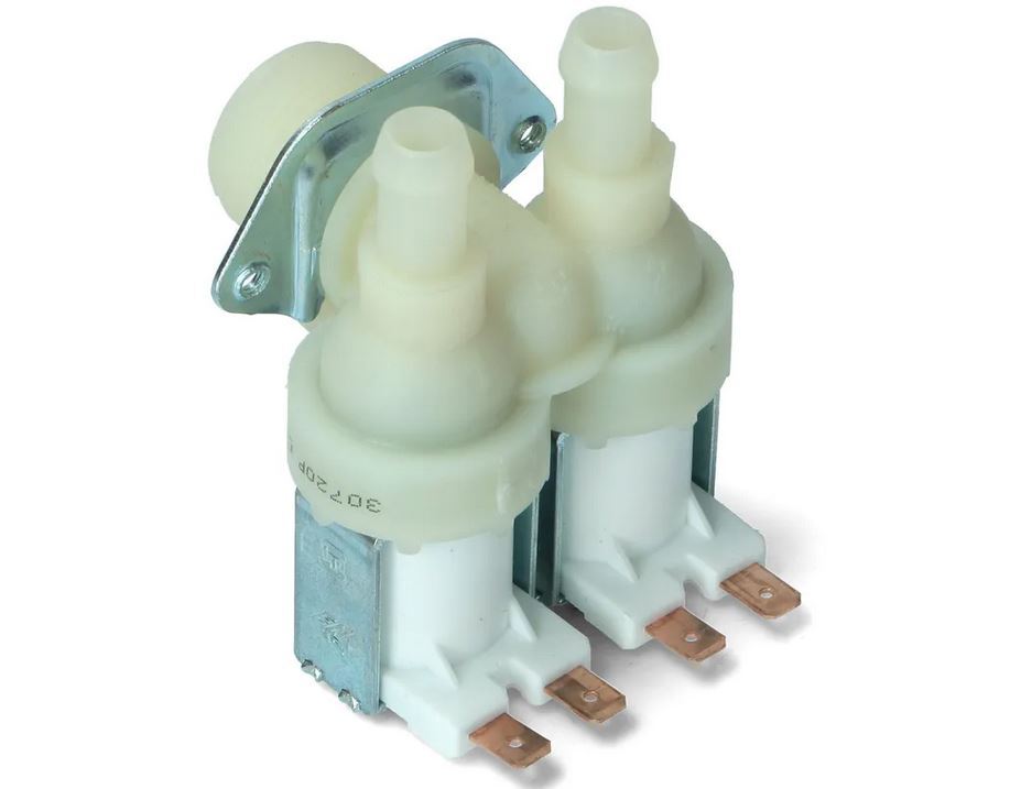Электро-клапан от любой стиральной машинки на 220V. Они есть 1, 2х и 3х головочные, типа этого: